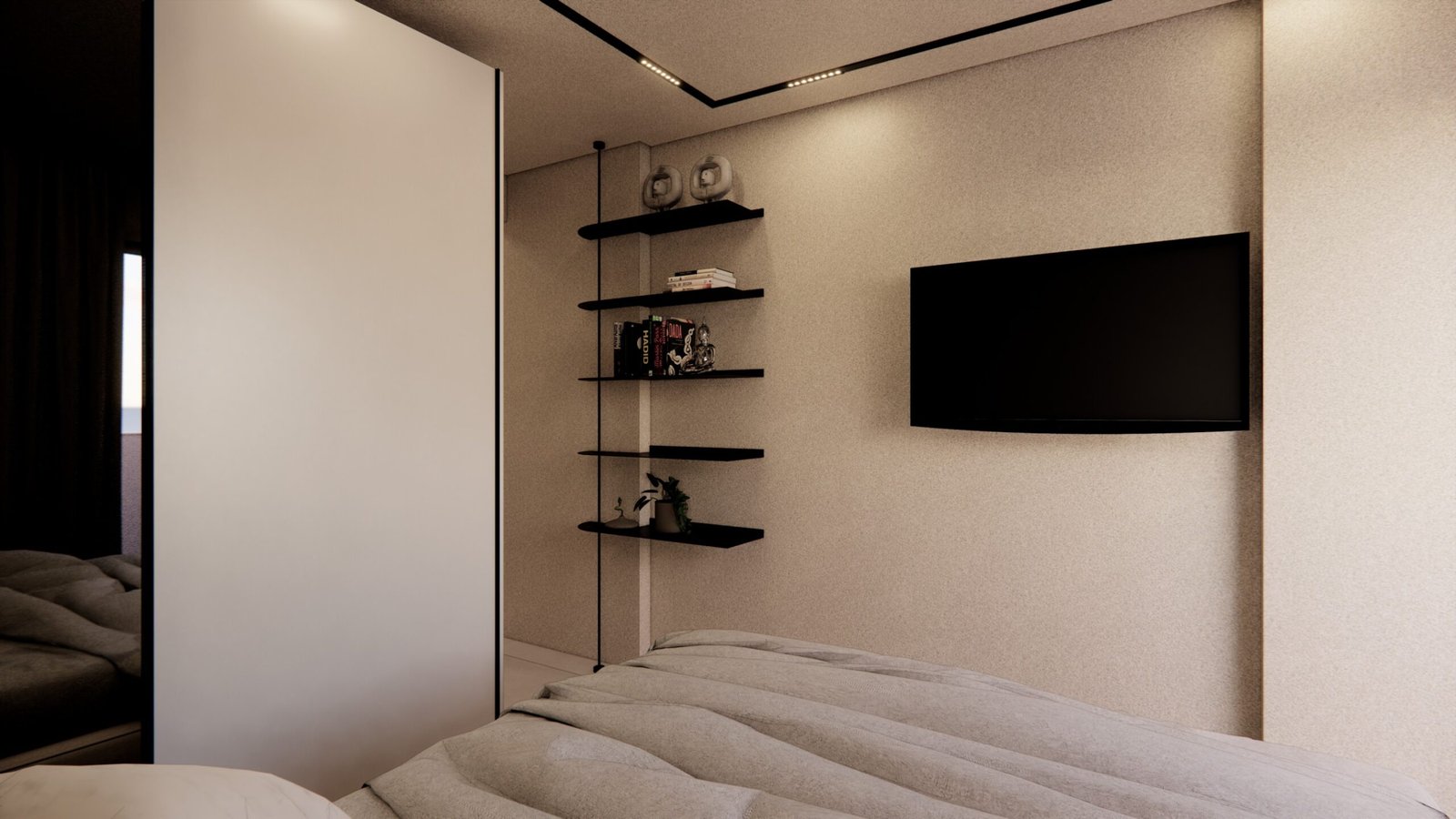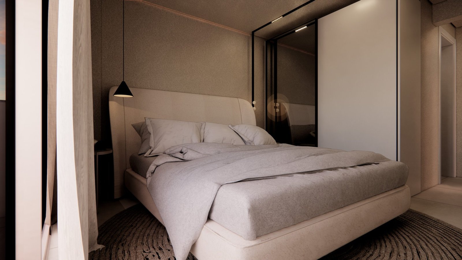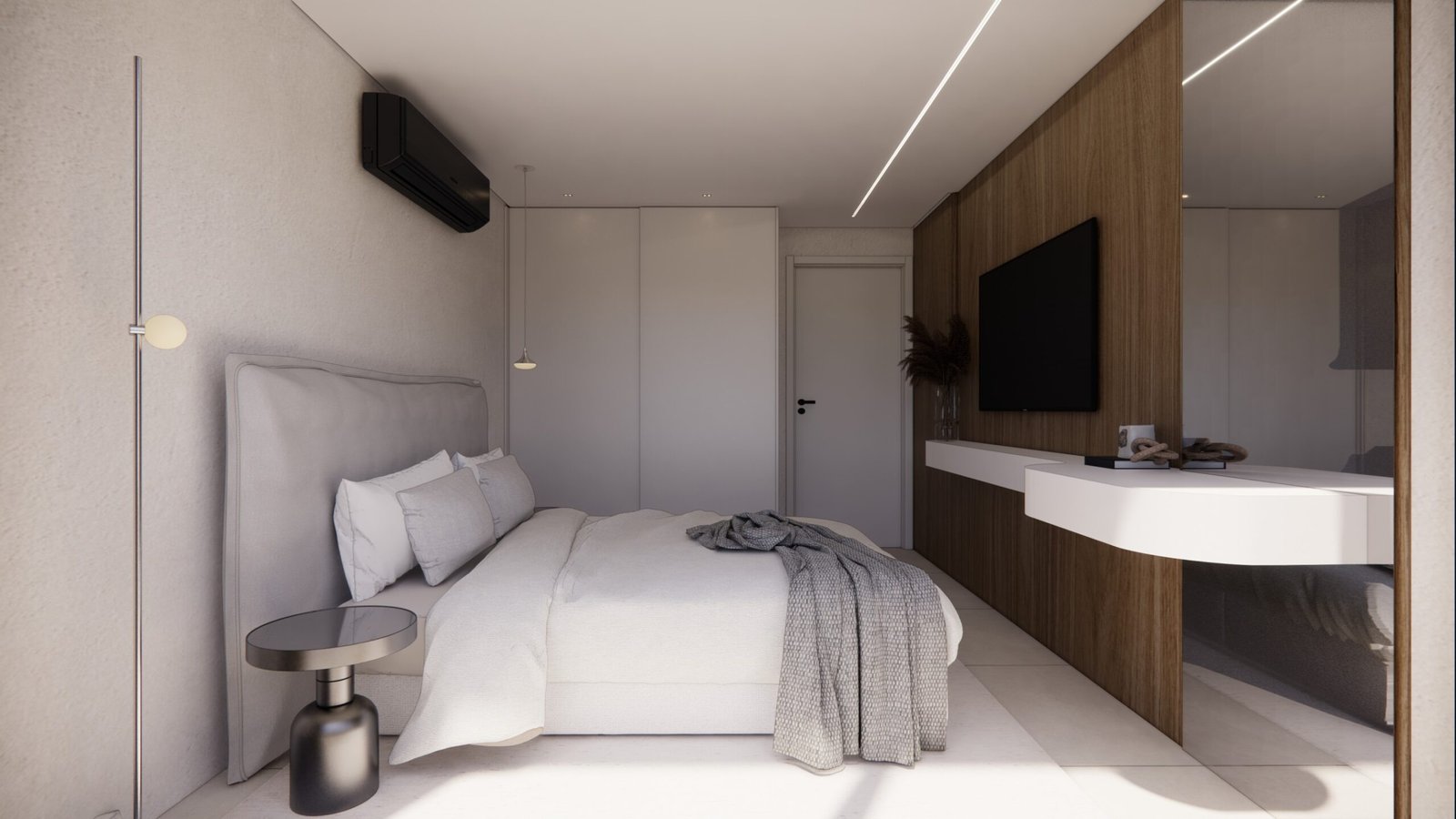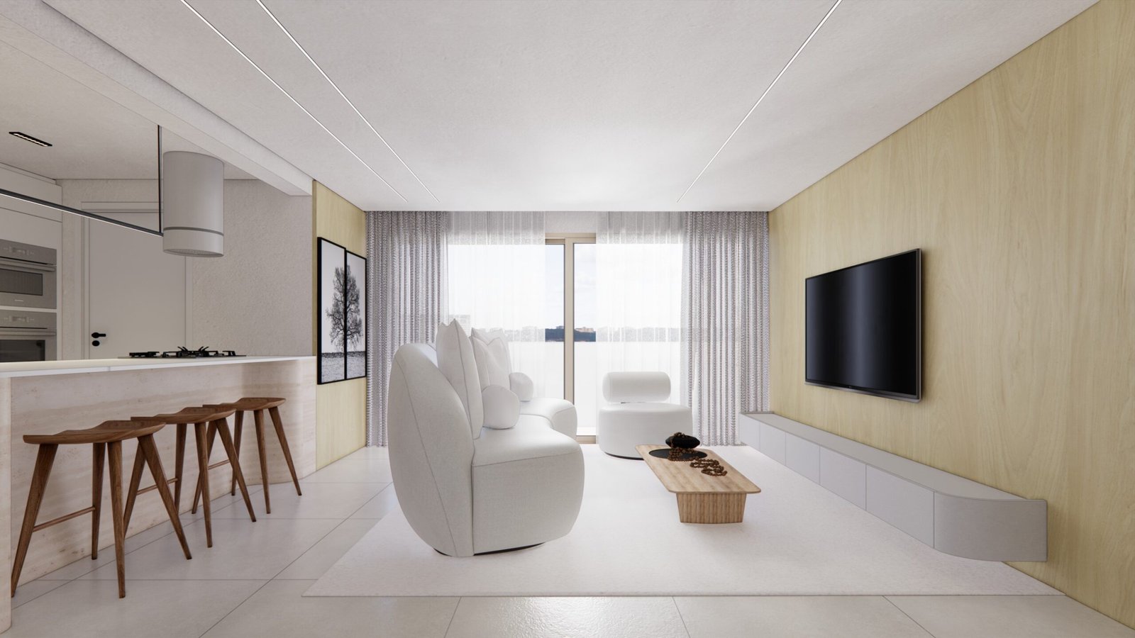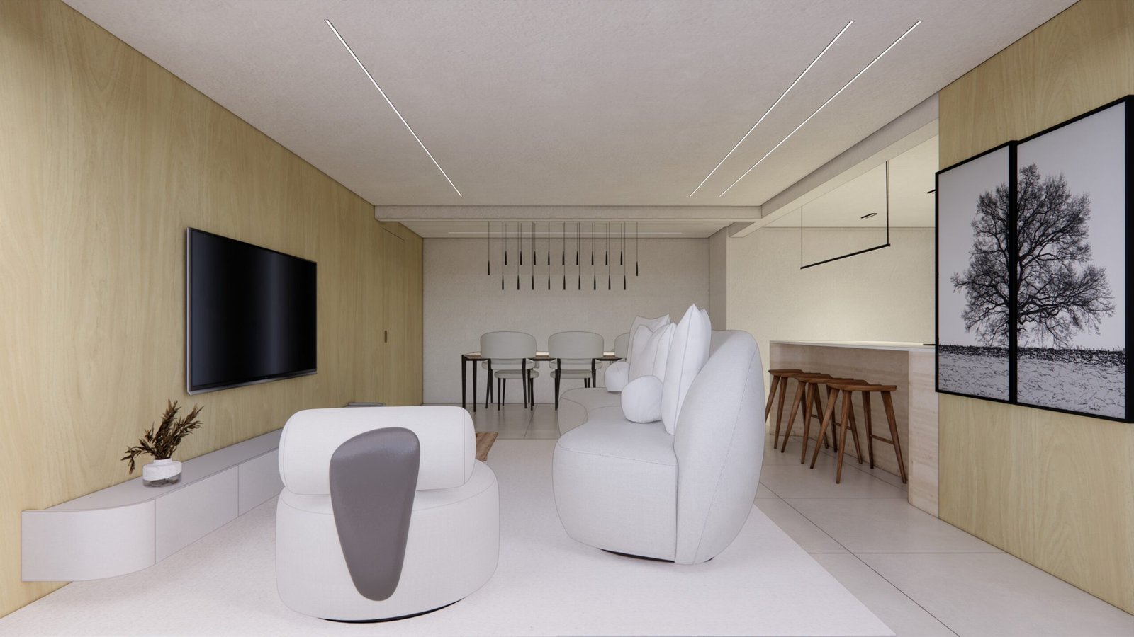 O cliente desejava criar uma atmosfera leve, moderna e aconchegante dentro do apartamento. Utilizamos uma iluminação mais suave e indireta assim criando uma sensação acolhedora. A paleta dentro do ambiente foi um tom mais suave para remeter a tranquilidade e funcionalidade. Além disso, para acentuar a modernidade, optamos por móveis com linhas limpas e contemporâneas, escolhendo peças que oferecem conforto sem sacrificar o estilo. A disposição dos móveis foi cuidadosamente planejada para otimizar o espaço e facilitar a circulação, criando áreas funcionais que ainda fluem suavemente de um ambiente para o outro. Além disso, investimos em soluções de armazenamento inteligentes para manter a desordem sob controle e garantir que o espaço permaneça organizado e convidativo.
