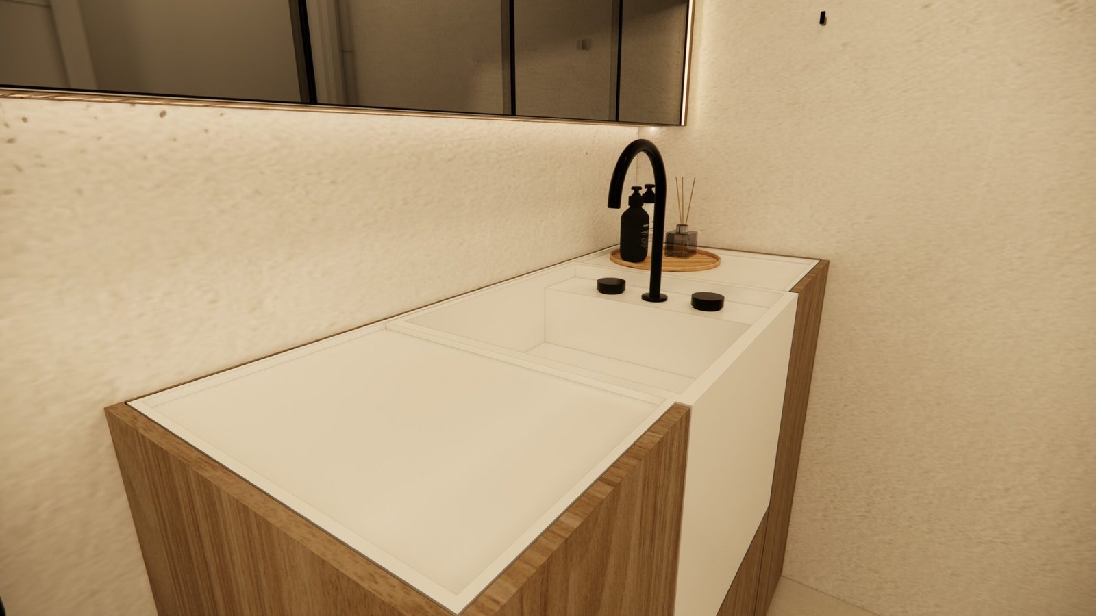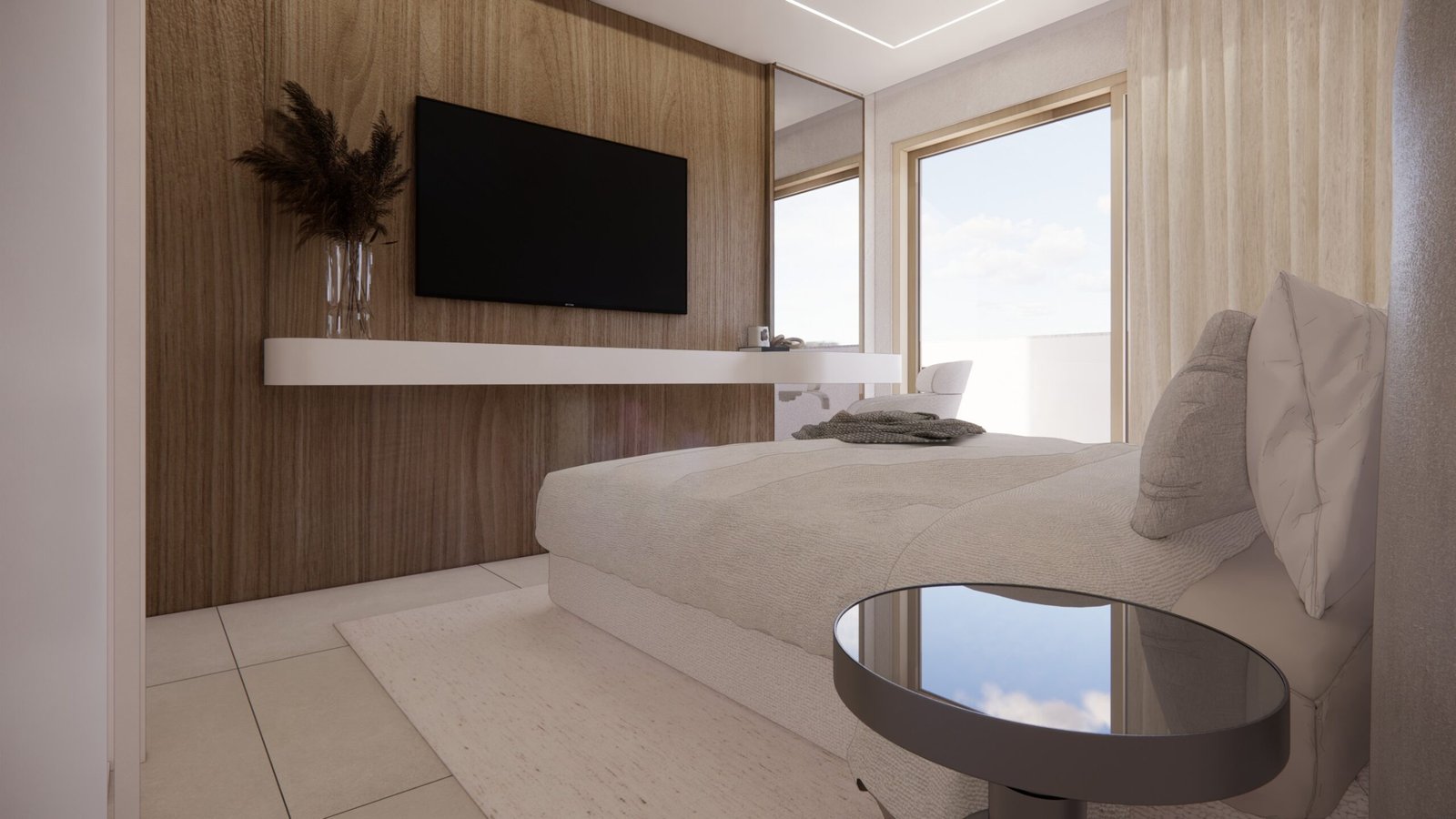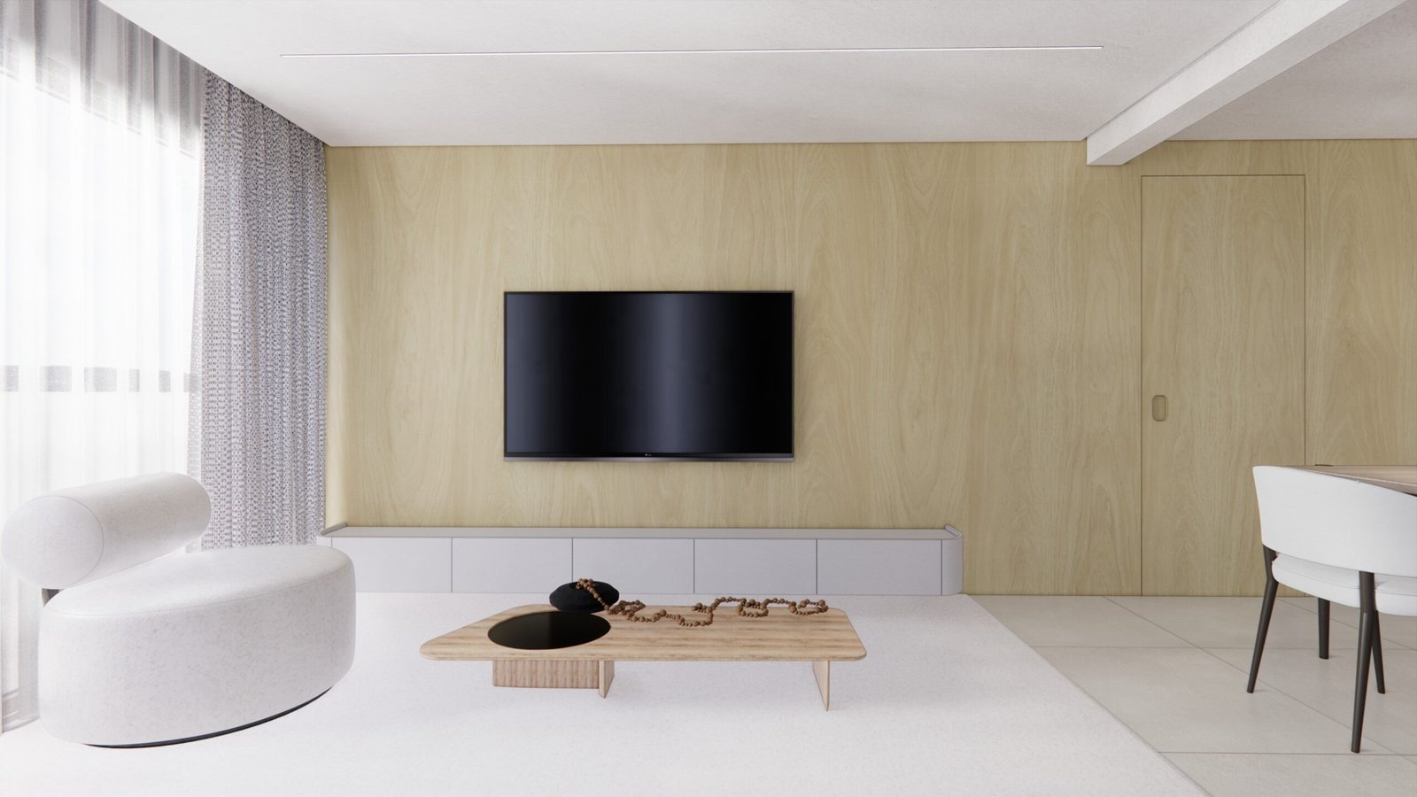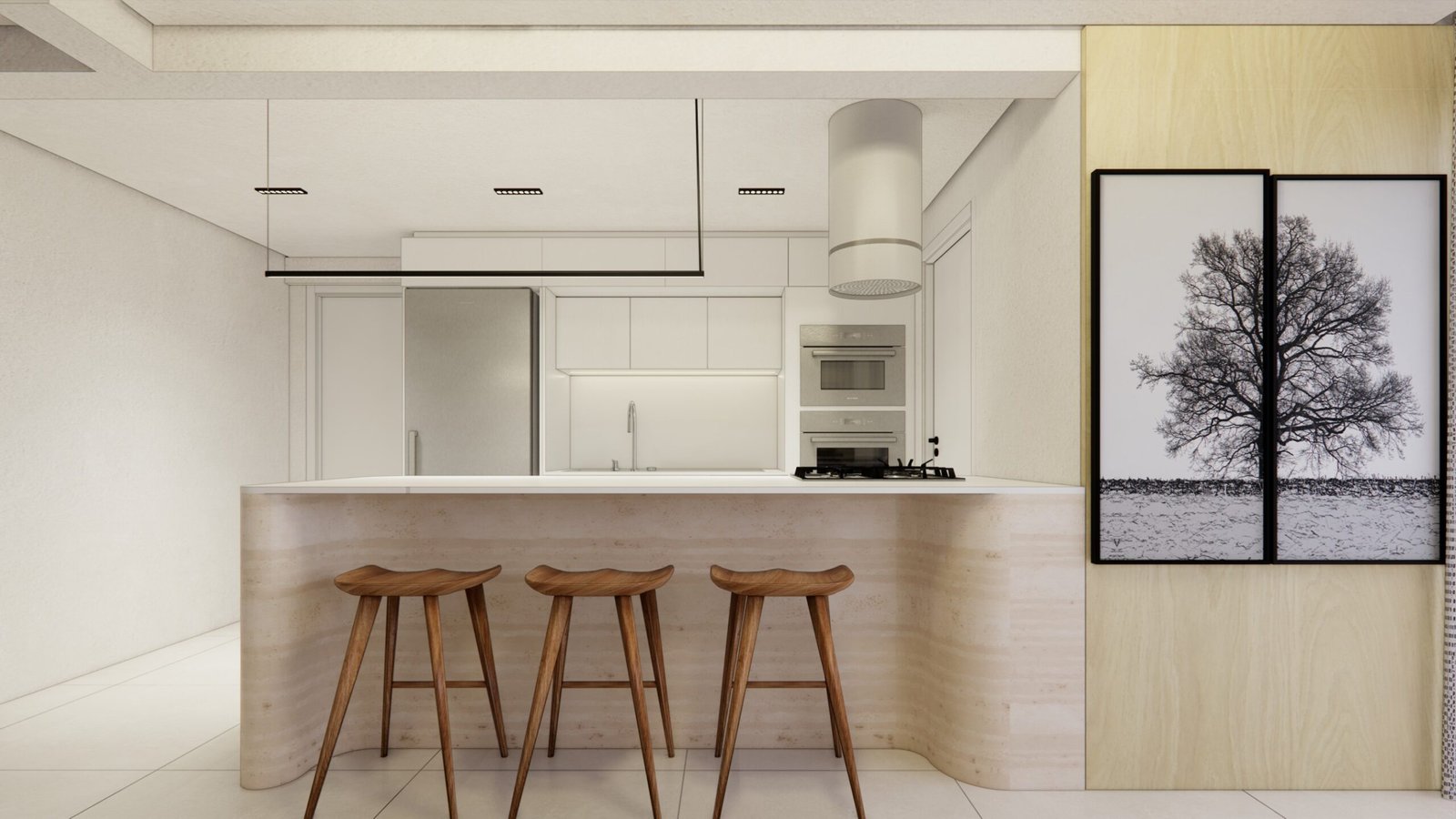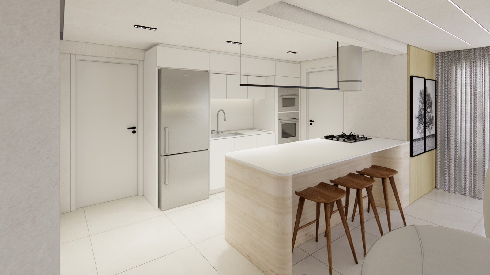 O cliente desejava criar uma atmosfera leve, moderna e aconchegante dentro do apartamento. Utilizamos uma iluminação mais suave e indireta assim criando uma sensação acolhedora. A paleta dentro do ambiente foi um tom mais suave para remeter a tranquilidade e funcionalidade. Além disso, para acentuar a modernidade, optamos por móveis com linhas limpas e contemporâneas, escolhendo peças que oferecem conforto sem sacrificar o estilo. A disposição dos móveis foi cuidadosamente planejada para otimizar o espaço e facilitar a circulação, criando áreas funcionais que ainda fluem suavemente de um ambiente para o outro. Além disso, investimos em soluções de armazenamento inteligentes para manter a desordem sob controle e garantir que o espaço permaneça organizado e convidativo.